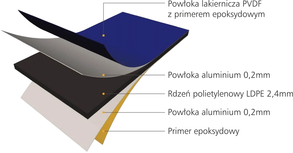 - pokryty jest warstwą aluminium 2mmna wierzchu powłoka lakiernicza PVDF z podkładem