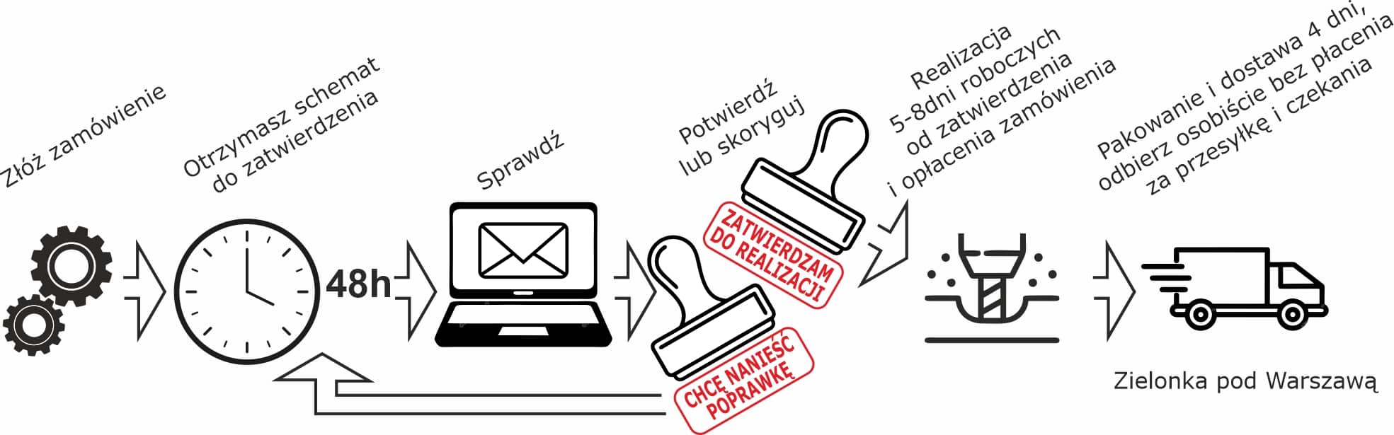 - Po otrzymankiu płatności przystępujemy do realizacji. Czas realizacji fo 5 dni roboczych.