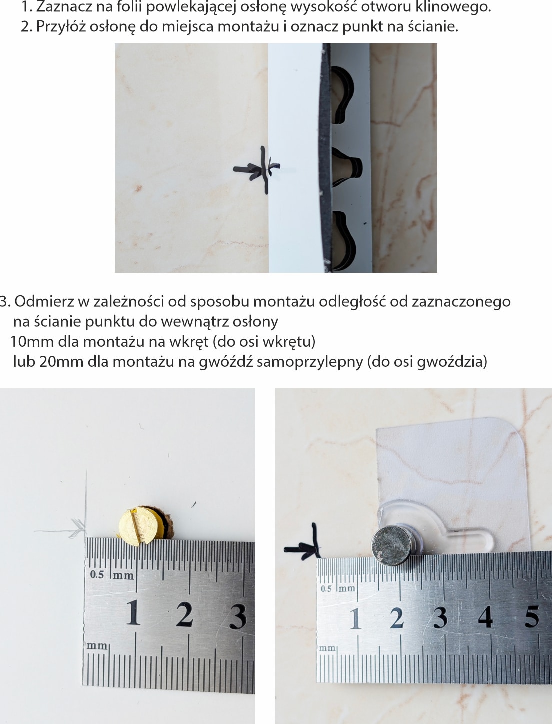 Wyznaczanie punktów wiercenia otworów pod wkrętu lub przyklejania gwoździa samoprzylepnego