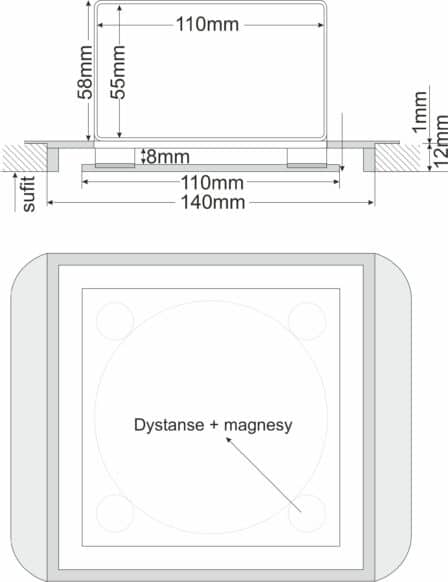 Anemostat płaski bezramkowy przyłącze 55x110mm.