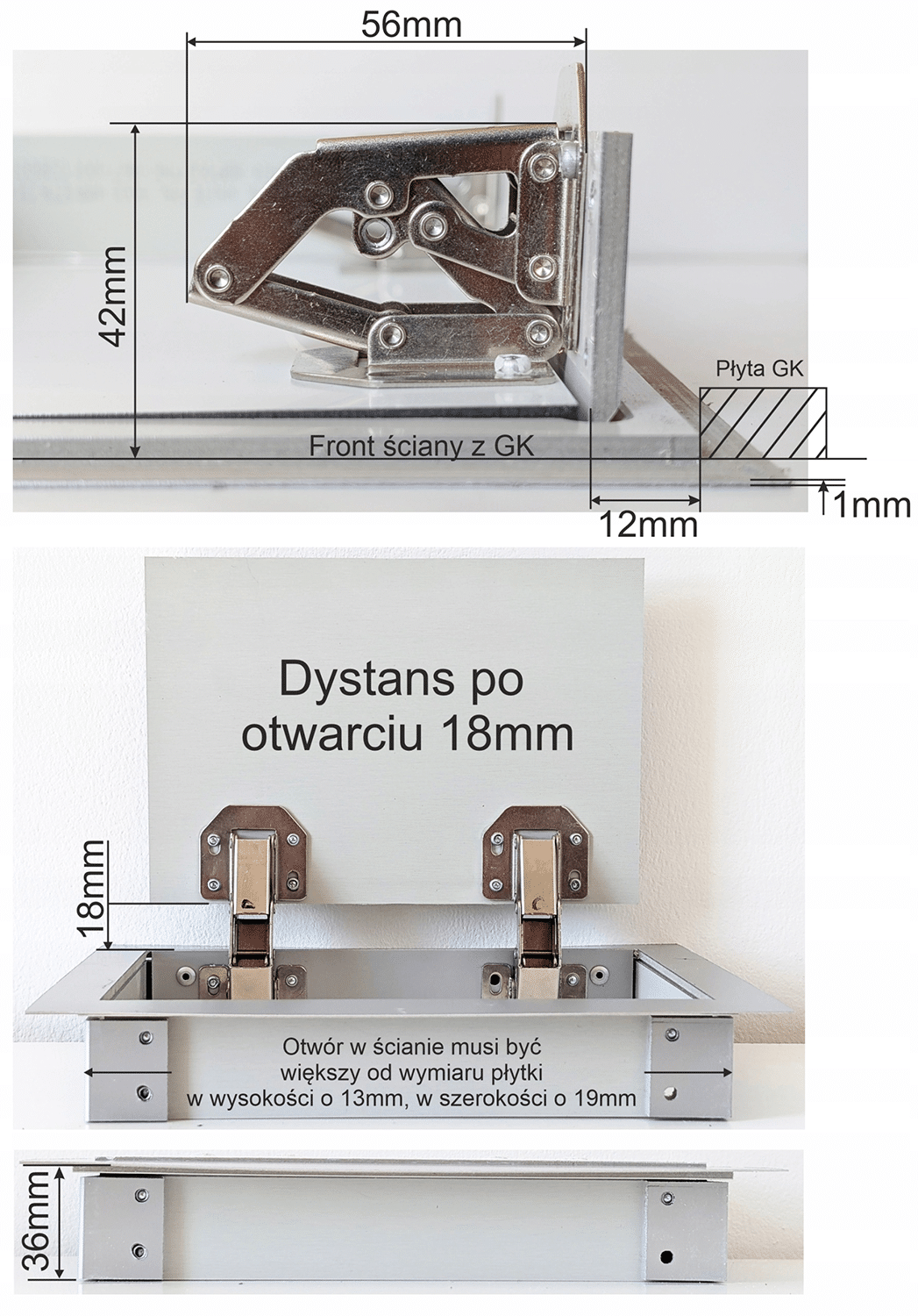 • dystans od podłoża po otwarciu drzwiczek 18mm