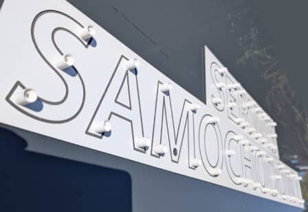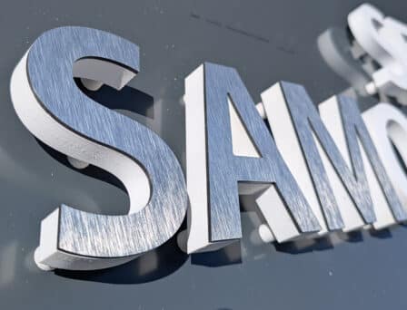 Wysokość znaku 12cm, szerokość napisu zależna od ilości znaków
