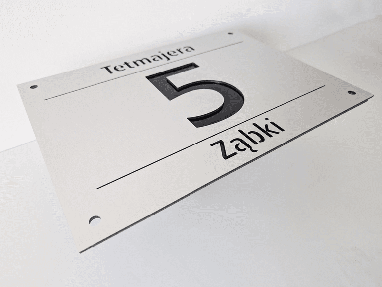 Tablica adresowa o wymiarach 40x60cm łączna grubość 6mm, wykonana z kompozytu aluminium (ACP dibond).